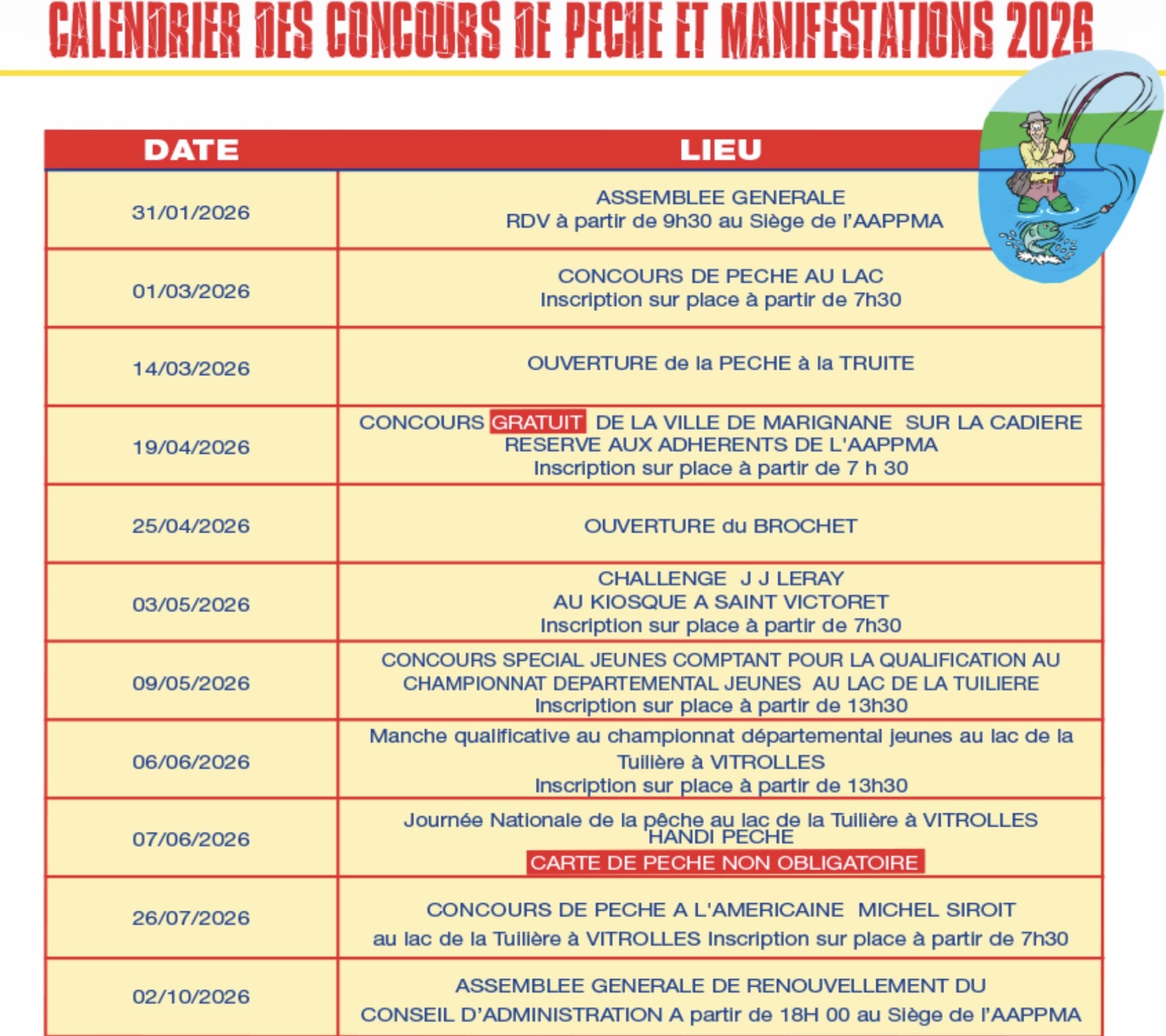 Votre AAPPMA organise chaque année pour votre plus grand plaisir des concours de pêche, des manches qualificatives au Championnat Départemental Jeunes, et autres manifestations diverses.